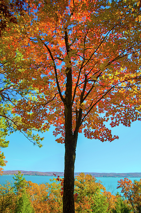 A red maple tree is illuminated by the afternoon sun, Glen Arbor, MI